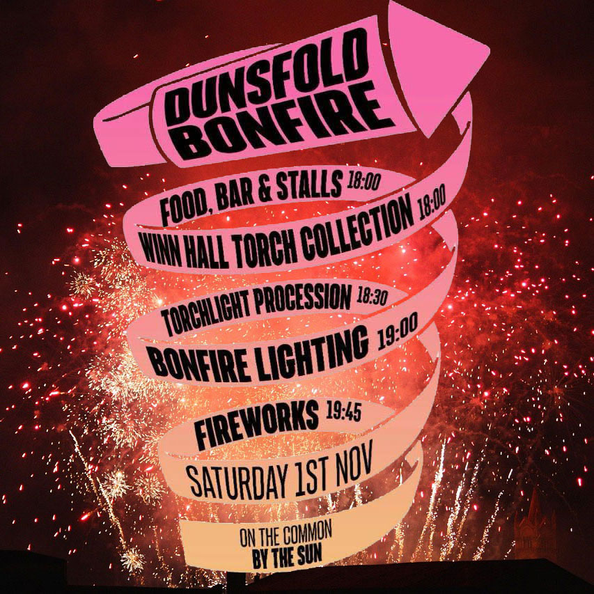 Join us for fireworks and fun on the common by The Sun Inn at Dunsfold on November 1st!